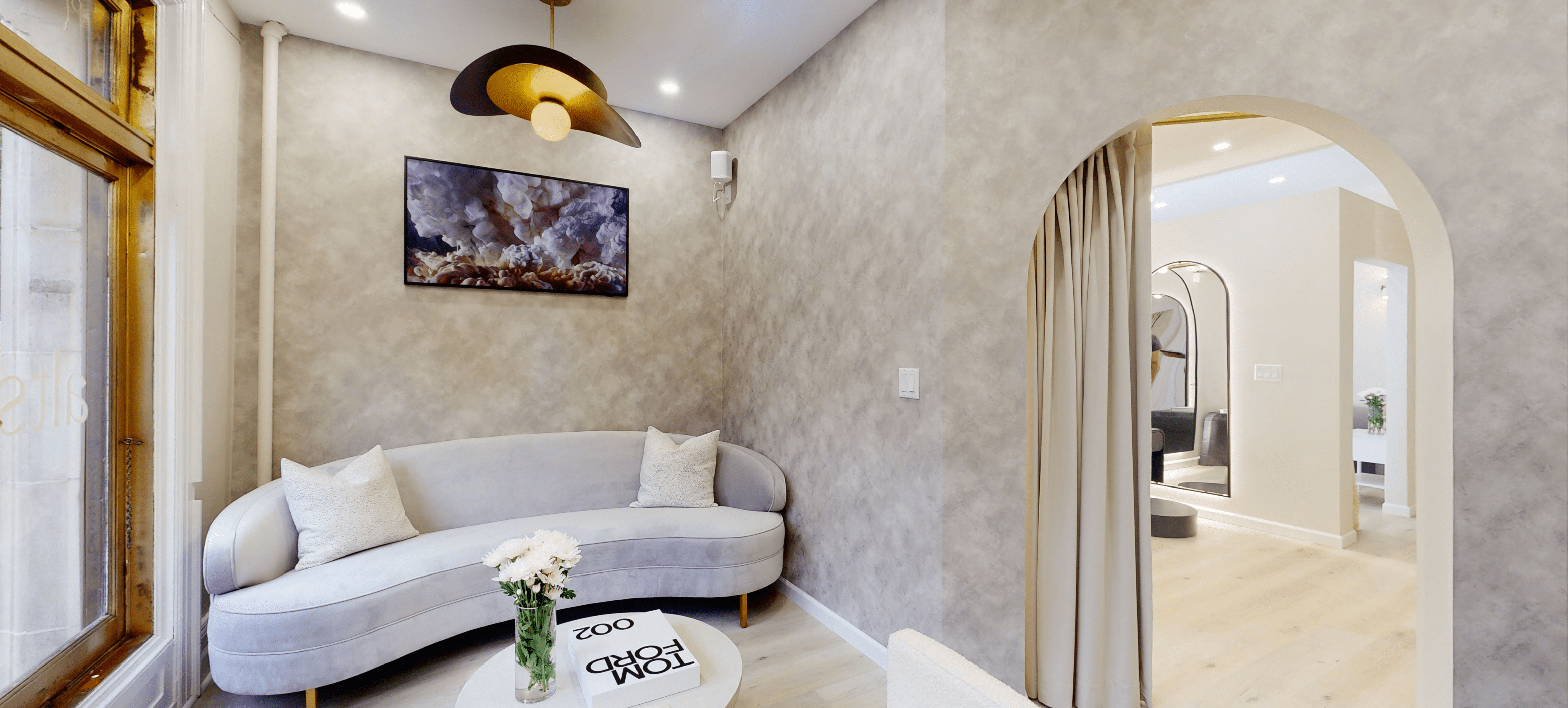 We curate our studios with a minimalist design, natural lighting, a calming scent and music to evoke a sense of comfort and sophistication for our clients. Our private spacious fitting rooms allow you to try on your garments comfortably and enjoy a unique and personalized tailoring experience.